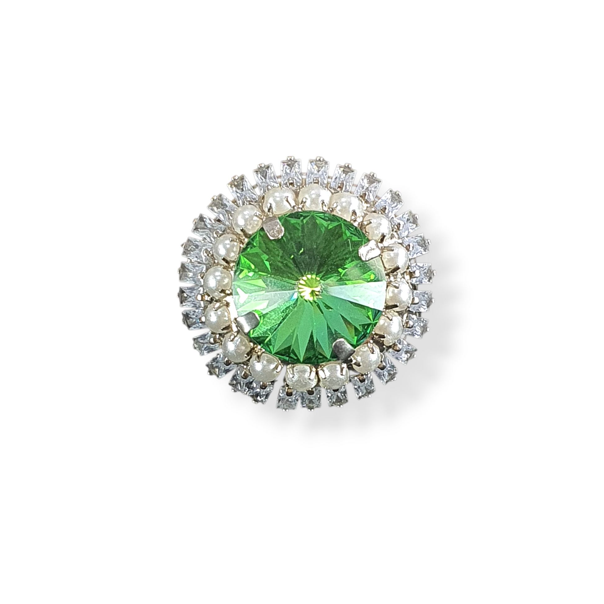 Anillo ajustable con cristales, austriacos, zirconias y perlas faux en acabado plateado brillante. 3 cms.