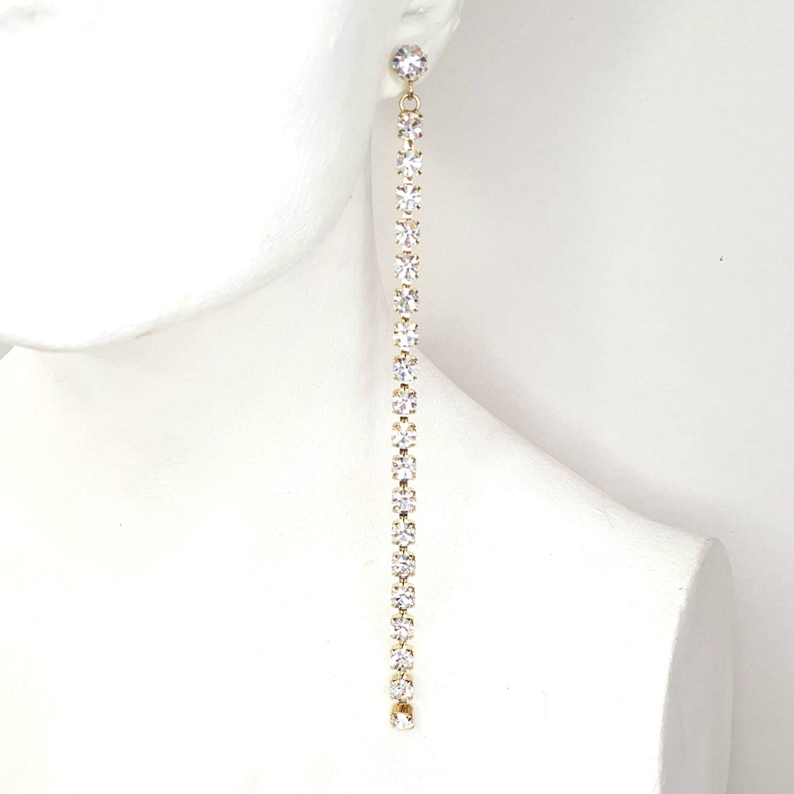 Aretes dorados con cristales checoslovacos de 6mm, 17cms, $1480.00, 2 pares