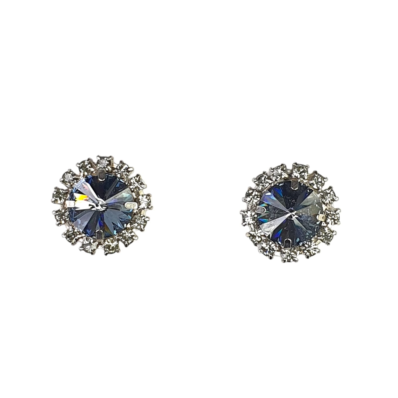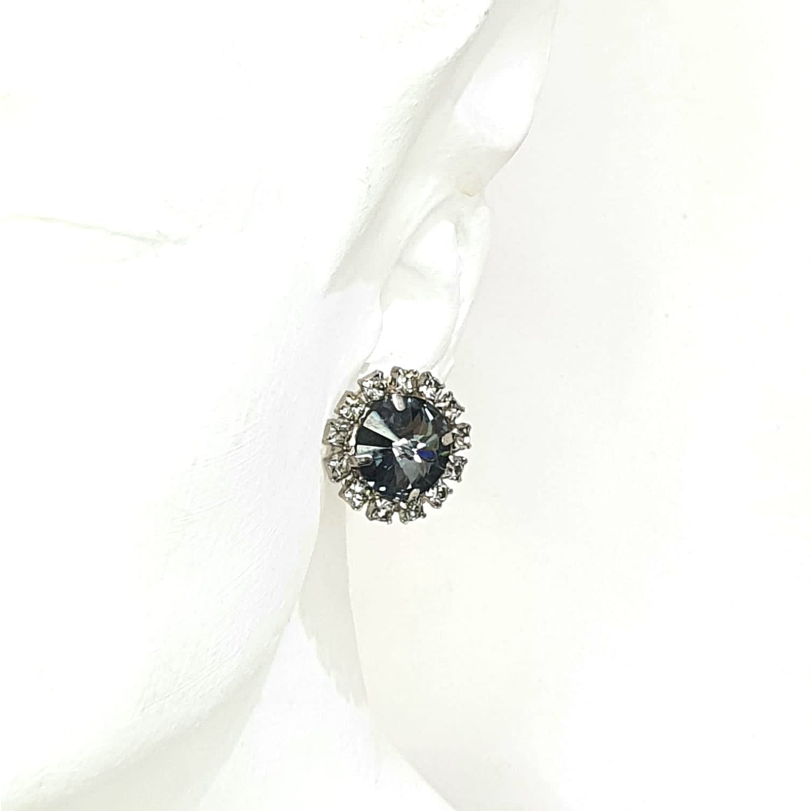 Aretes plateados con cristales Austriacos gris, 2.7 cms, pieza única.