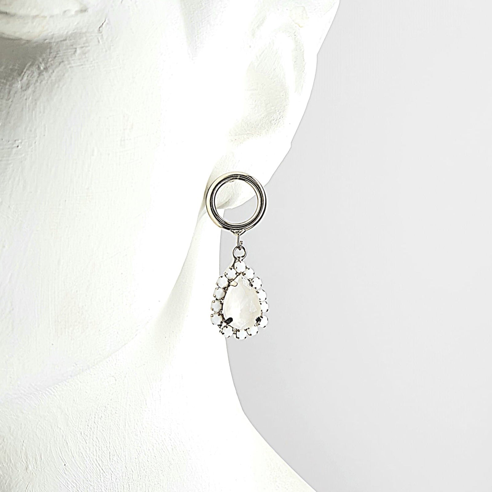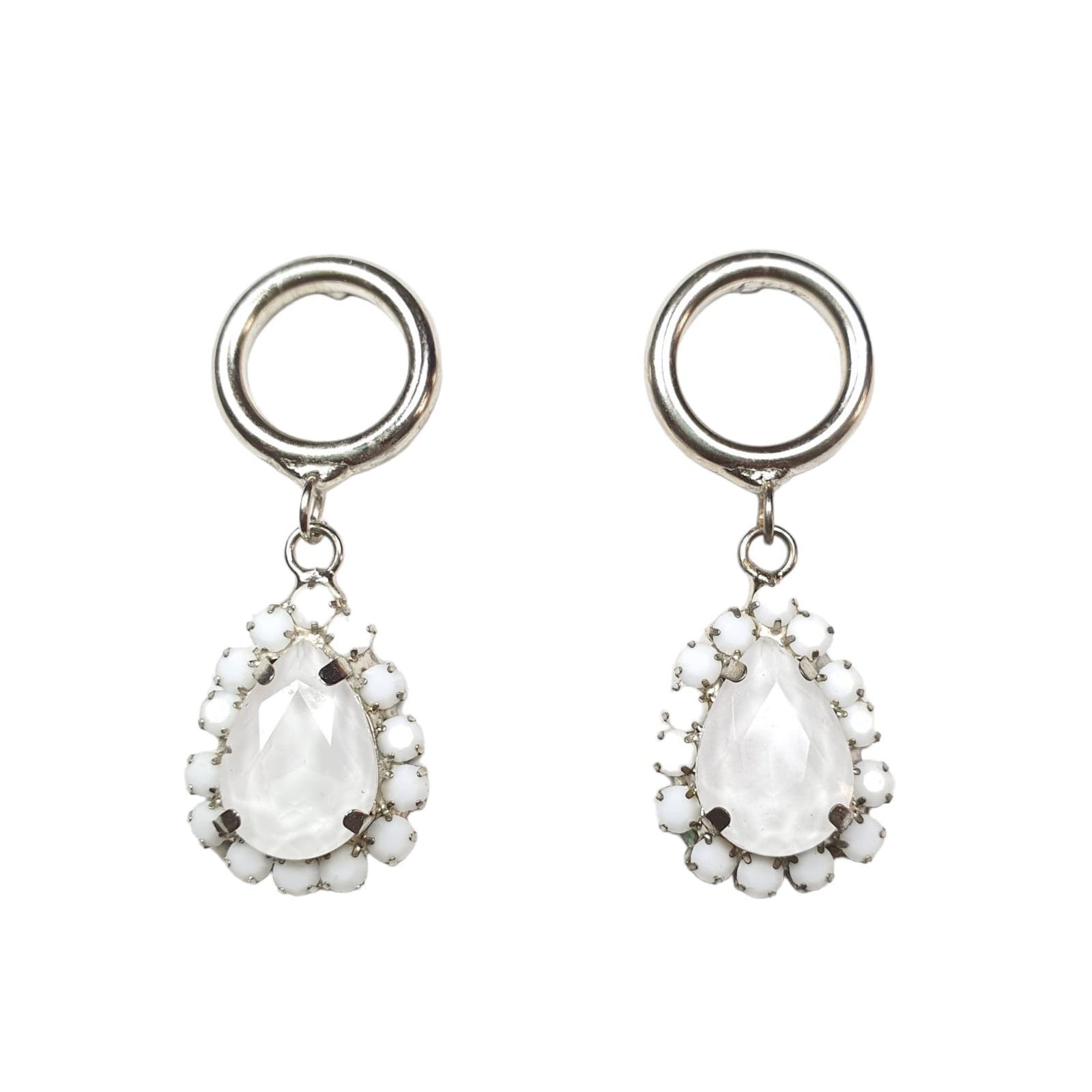 Aretes con cristales color blancos, plateados, 4.5 cms.