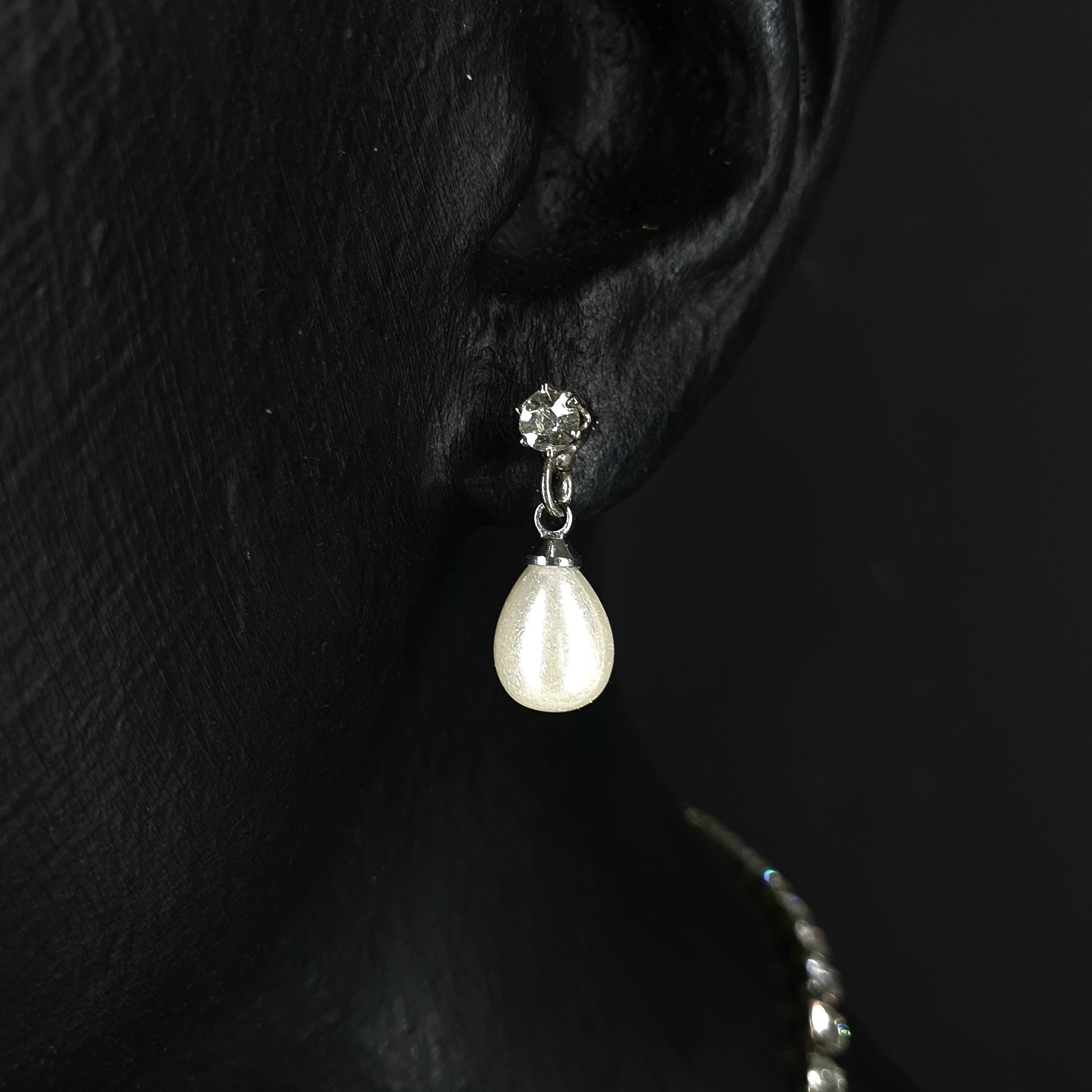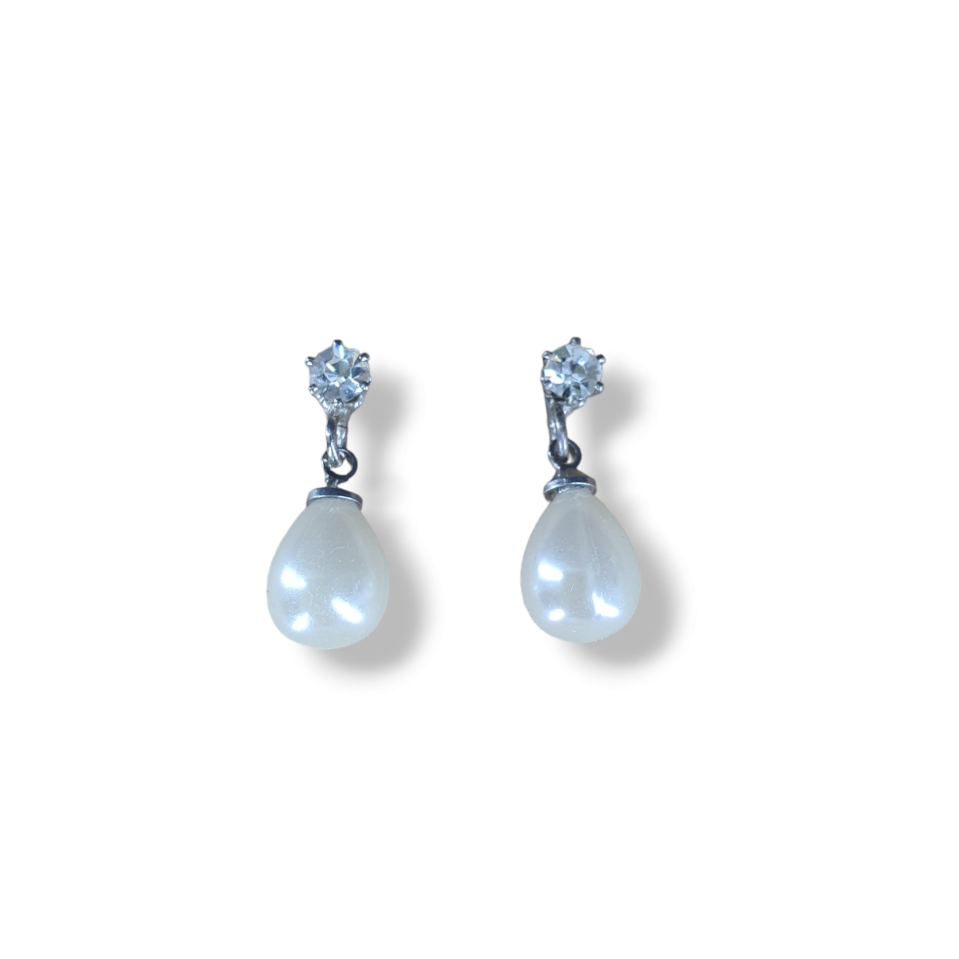 Aretes de 3 cms. Con cristales checoslovacos y perlas.