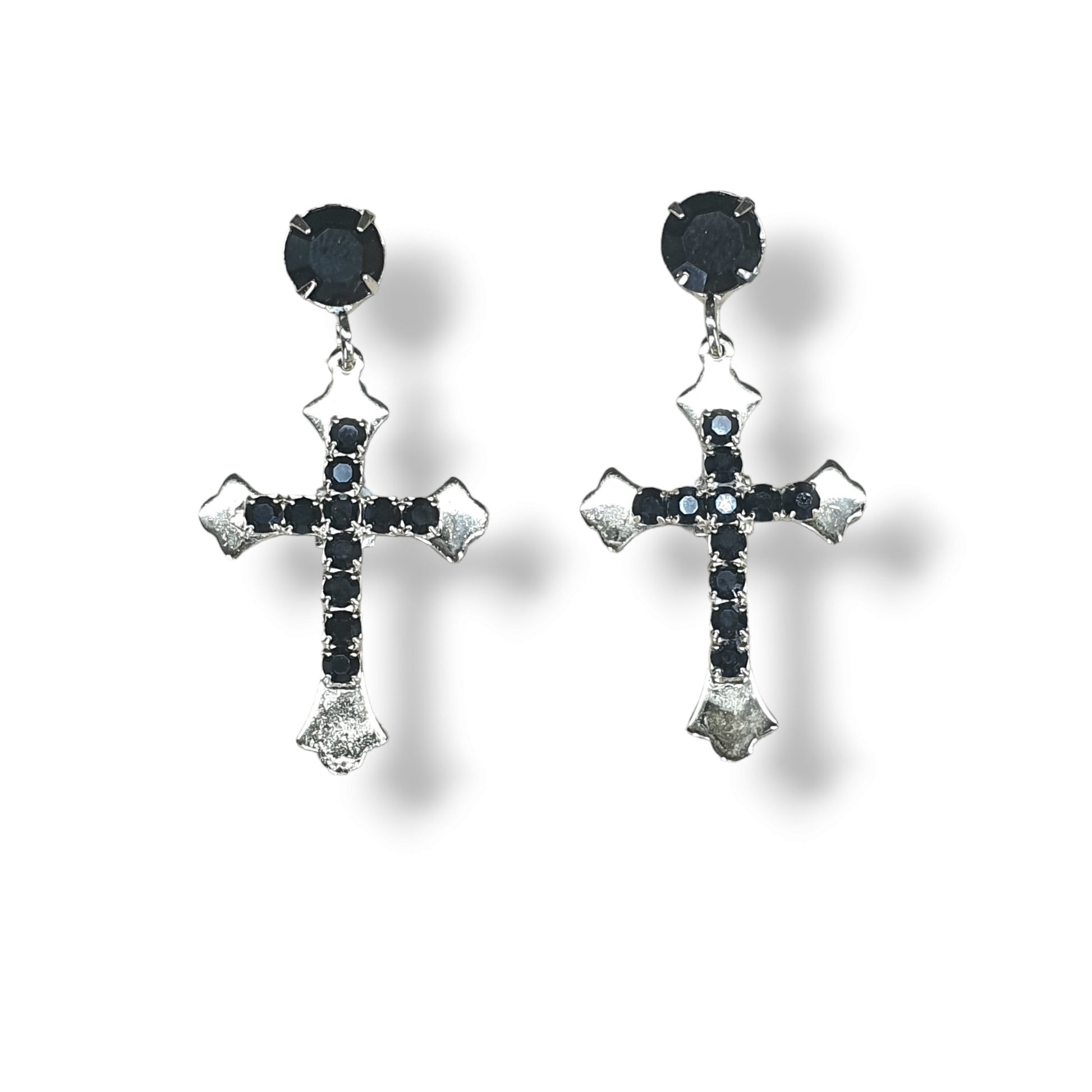 Aretes con cristales checoslovacos color negro en acabado dorado brillante. 5 cms