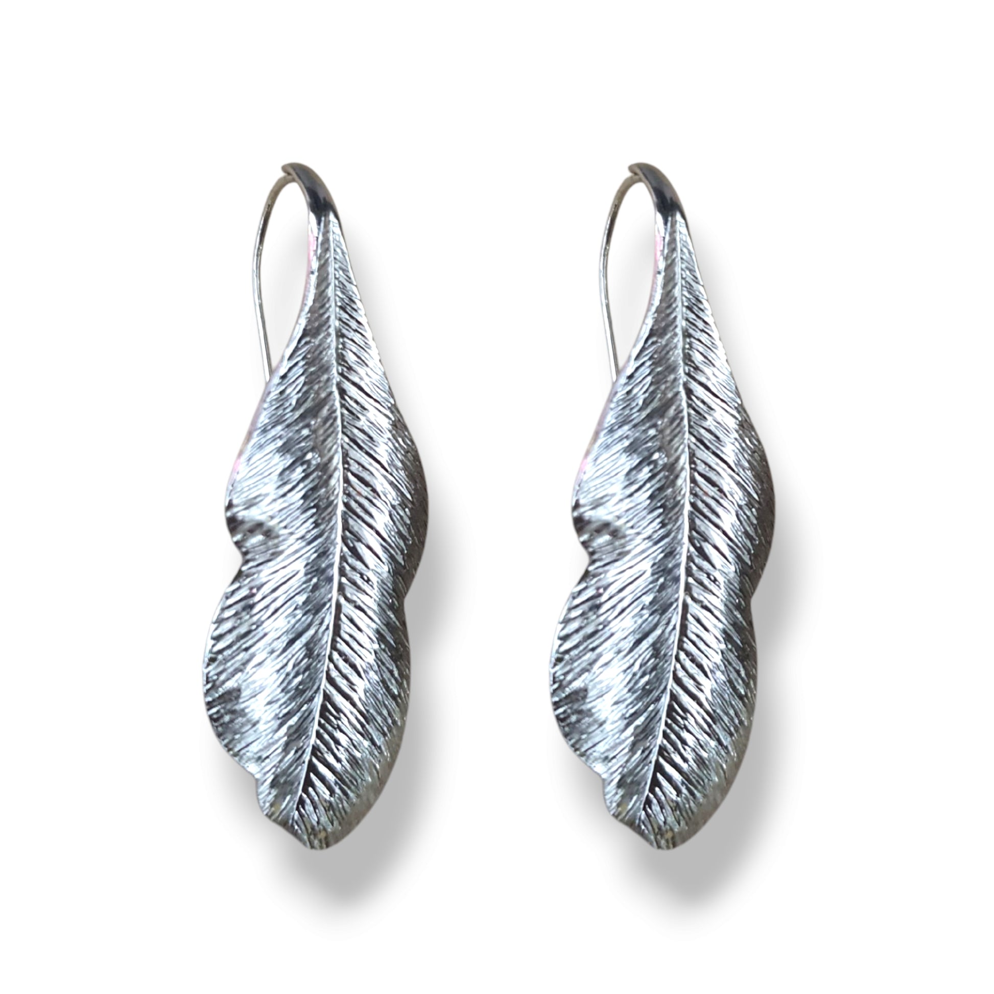 Aretes de metal en acabado plateado brillante y gancho largo. 6.5 cms.