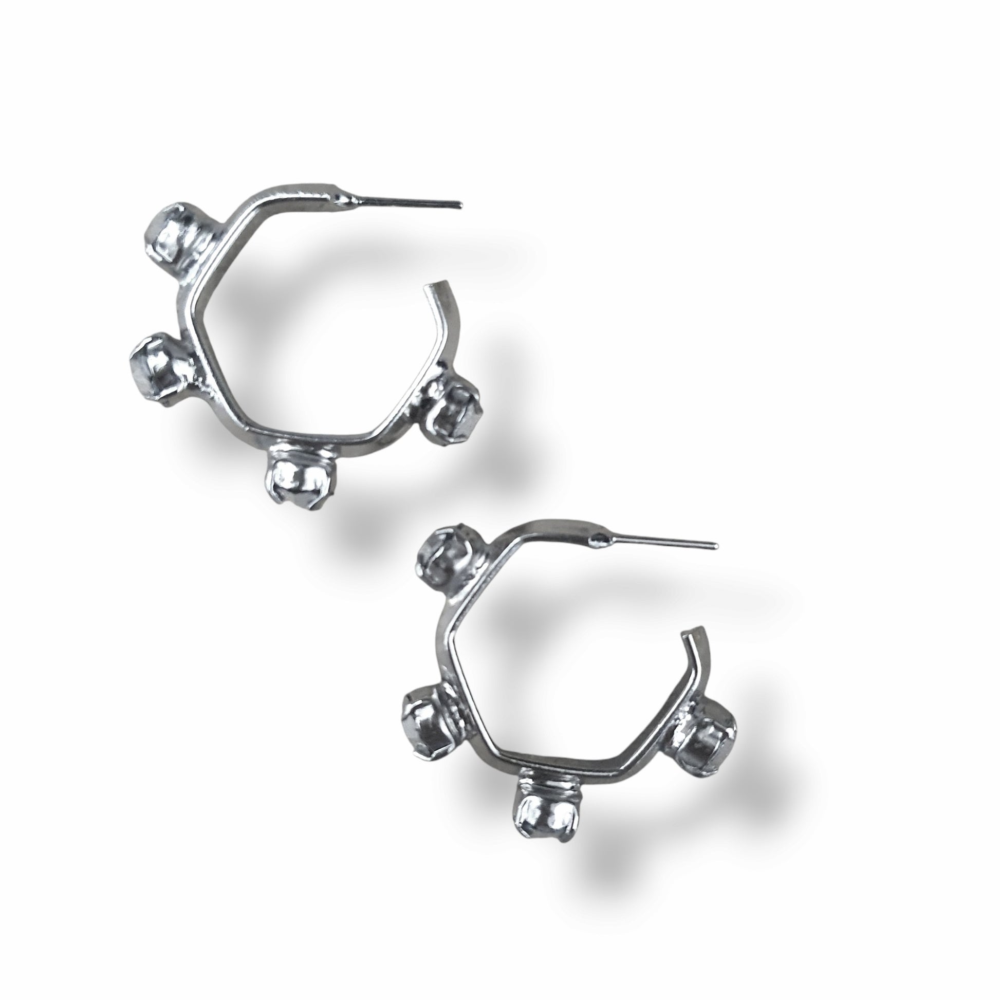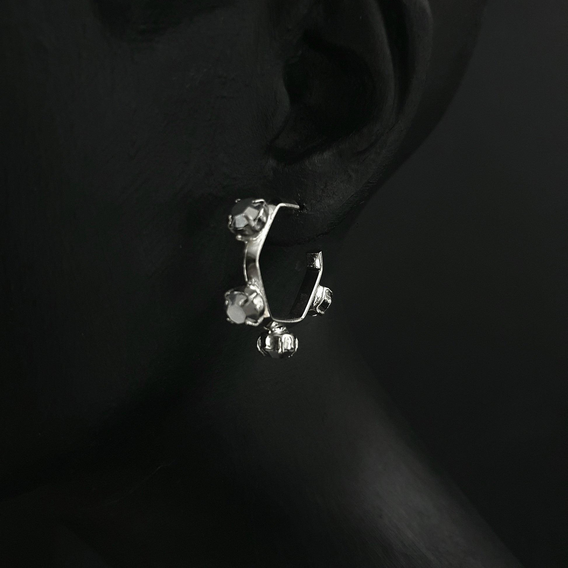 Arracadas geométricas con cristales checoslovacos en acabado plateado brillante. 3 cms.