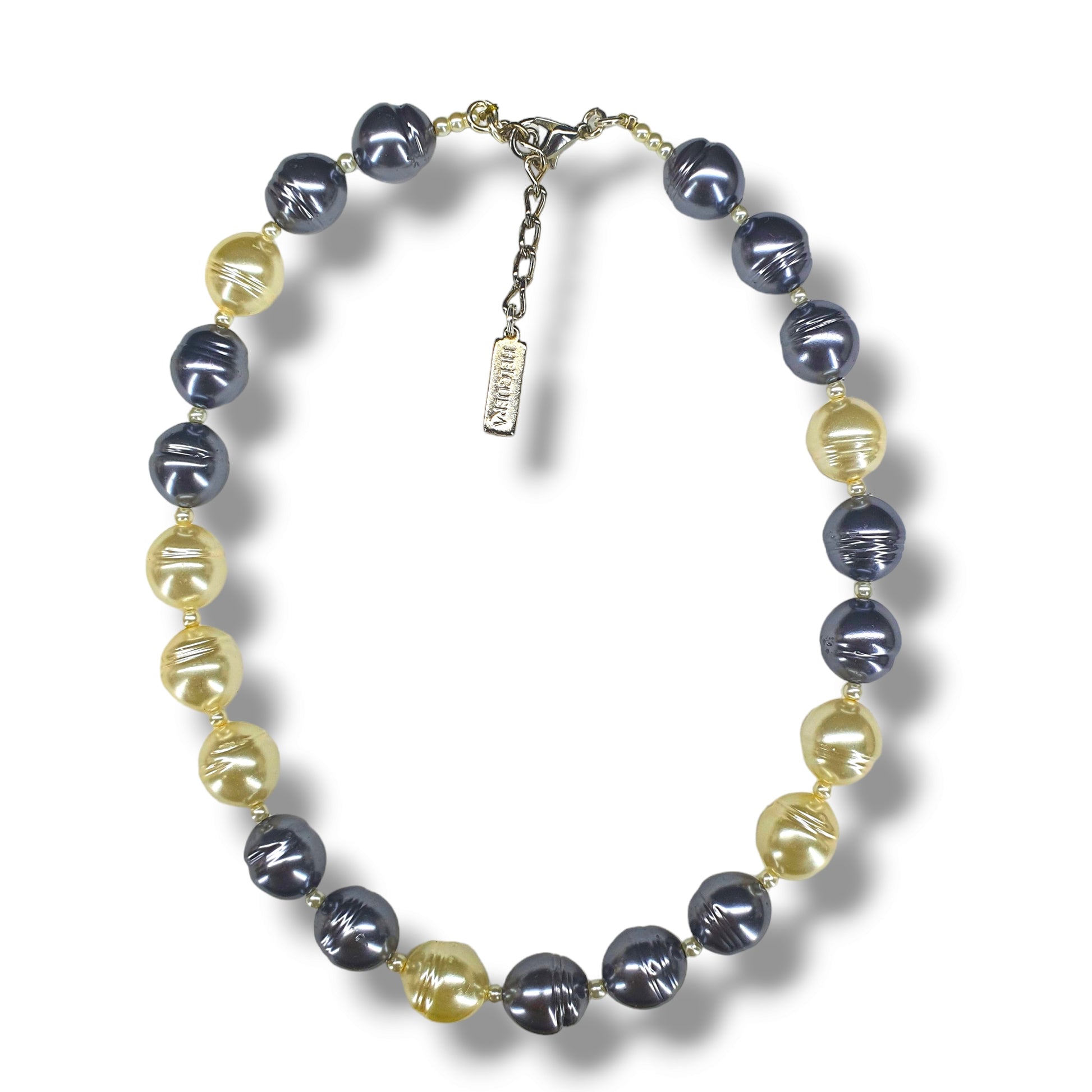 Collar con perlas barrocas de cristal [15 mm.] Gris con blanco, incluye aretes.