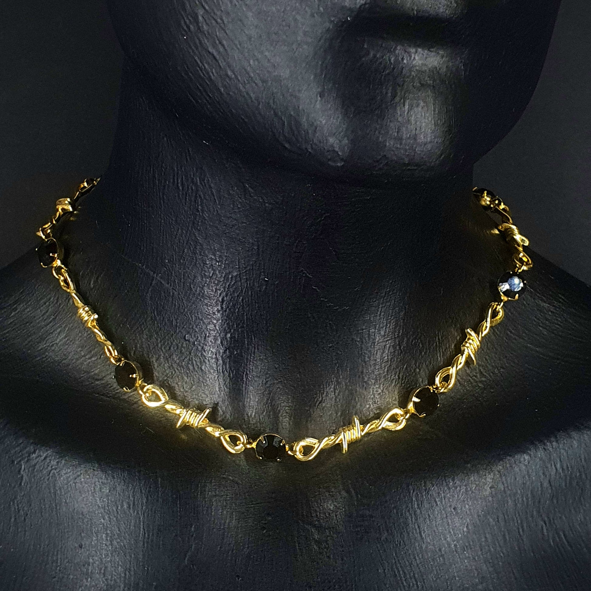 Collar con cristales checoslovacos en acabado dorado brillante. Largo de 40 cms. más 10 cms. de cadena de extensión