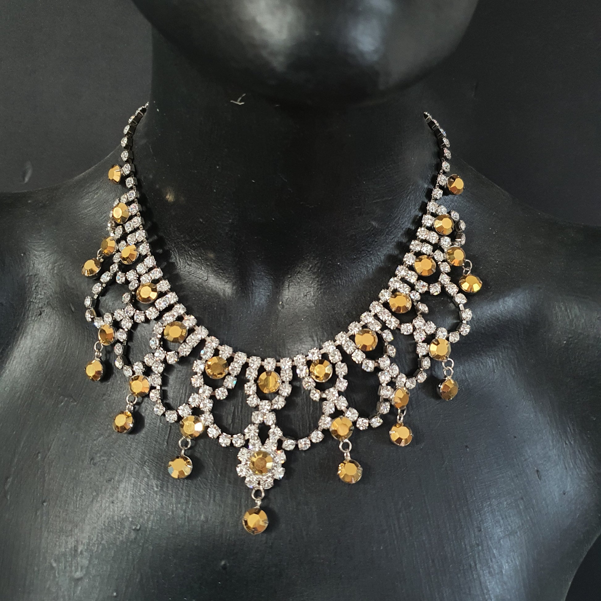 PIEZA ÚNICA Collar elaborado con cristales checoslovacos premium en color cristal natural y detalles en cristales color dorado, acabado plata brillante.