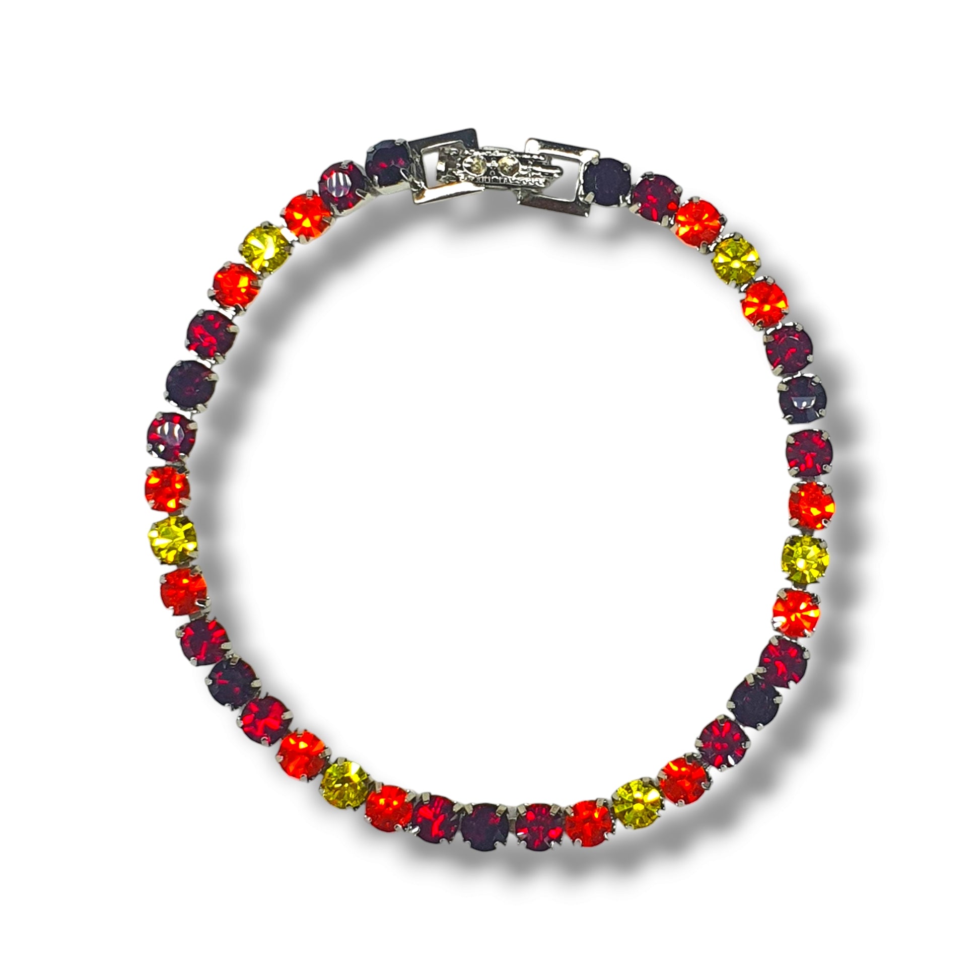 Pulsera tennis de 18 cms. con cristales checoslovacos degradados de rojo profundo a amarillo vibrante.